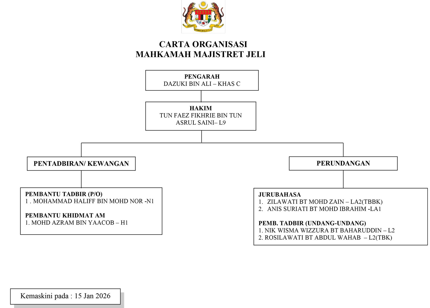 • Menguruskan penyediaan statistik-statistik Mahkamah Majistret Jenayah Jeli.